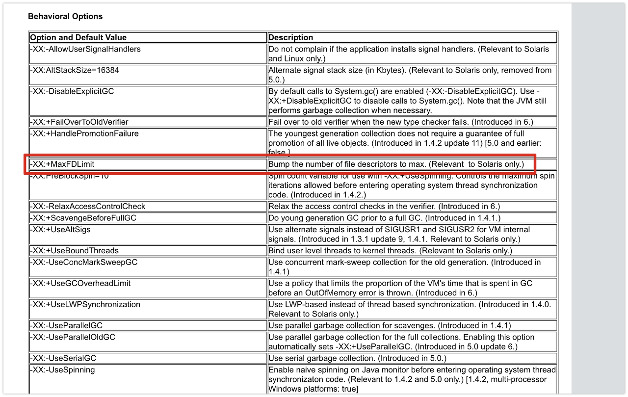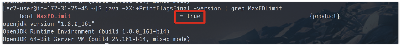 그리고 설치된 Java의 MaxFDLimit 기본값이 true임을 확인할 수 있습니다.