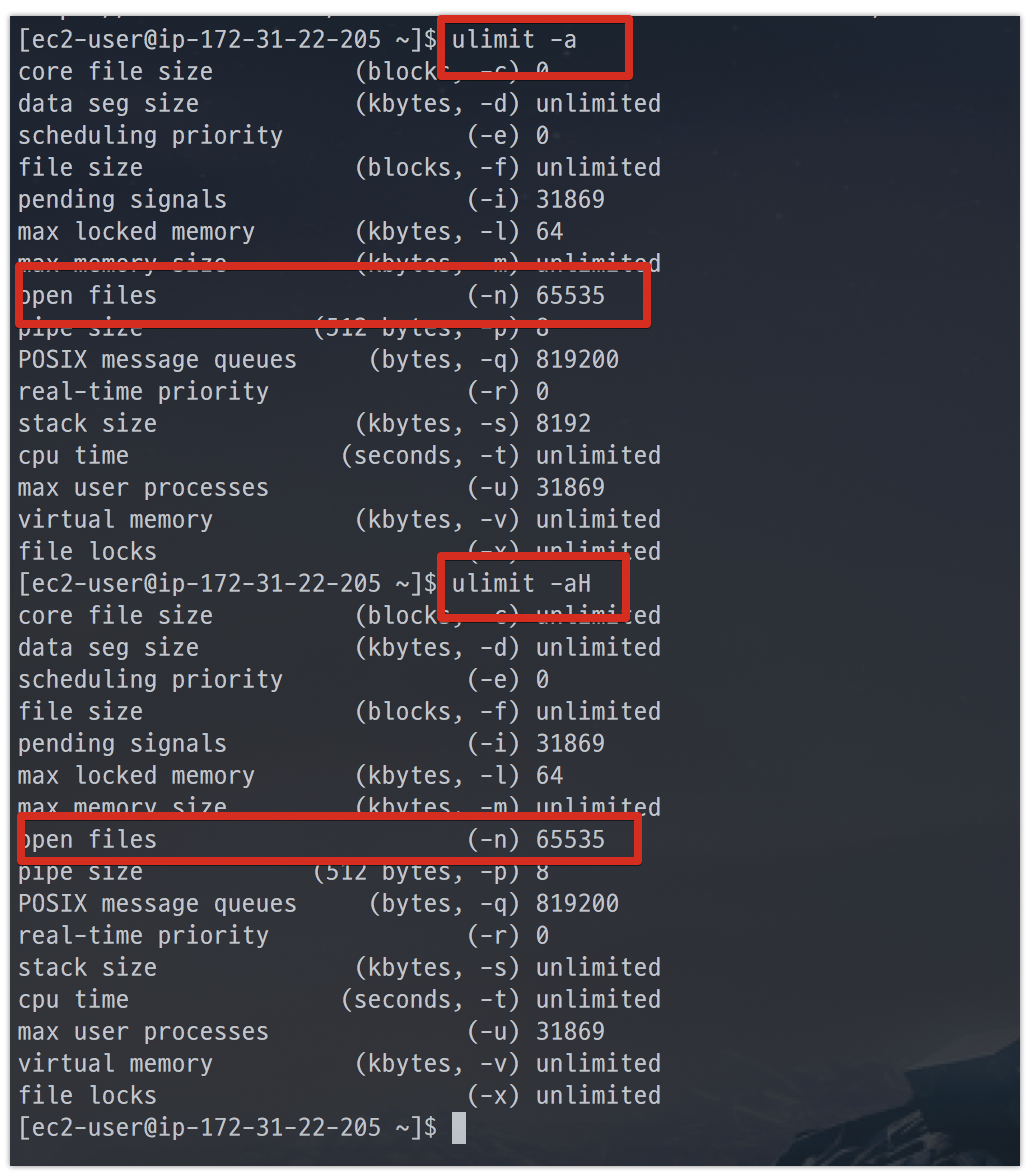 업데이트된 EC2의 ulimit은 아래와 같습니다.