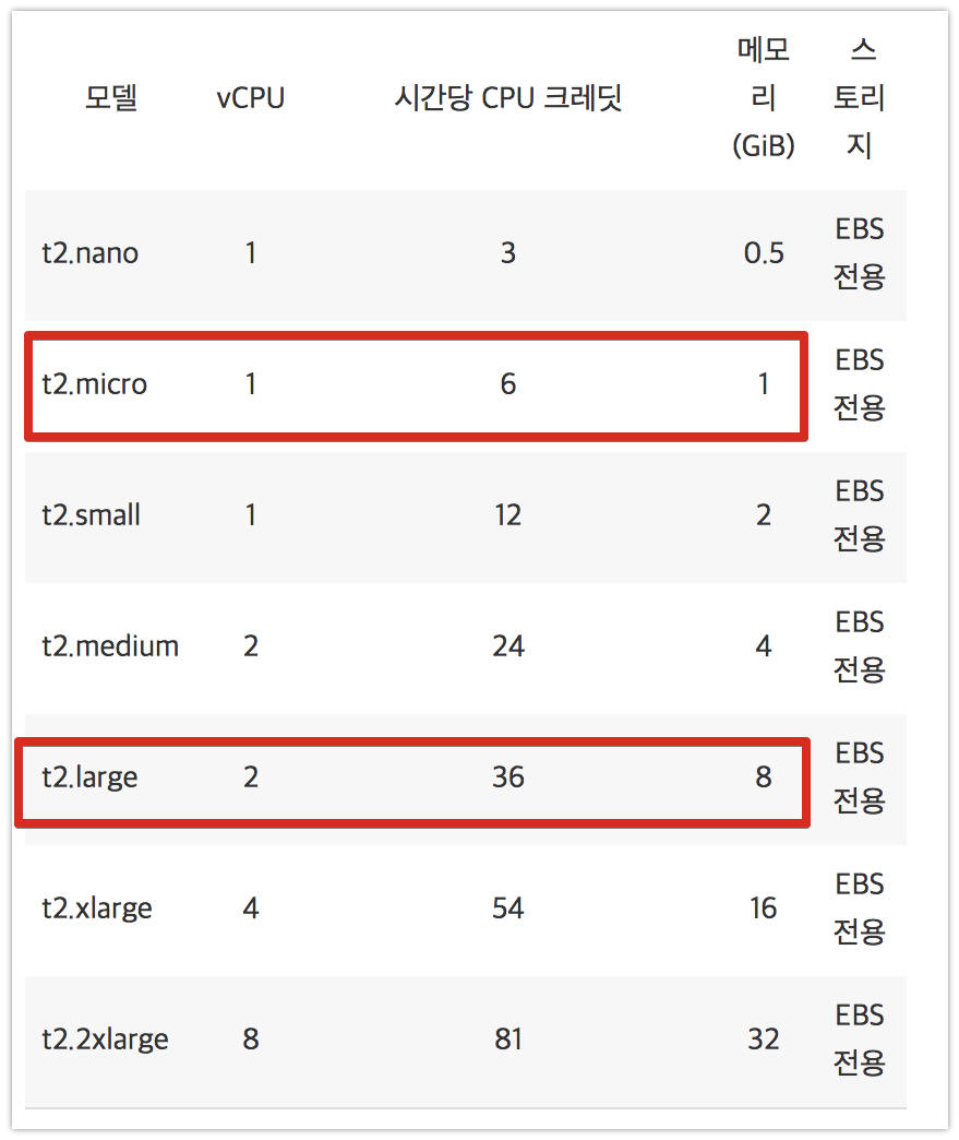 (t2.micro는 메모리가 1GB인지라, t2.large (8GB) 로 변경합니다.)