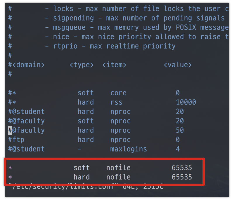 서버의 open files, max user processes등 옵션을 permanent (영구) 적용하기 위해선 /etc/security/limits.conf 을 수정하면 됩니다.