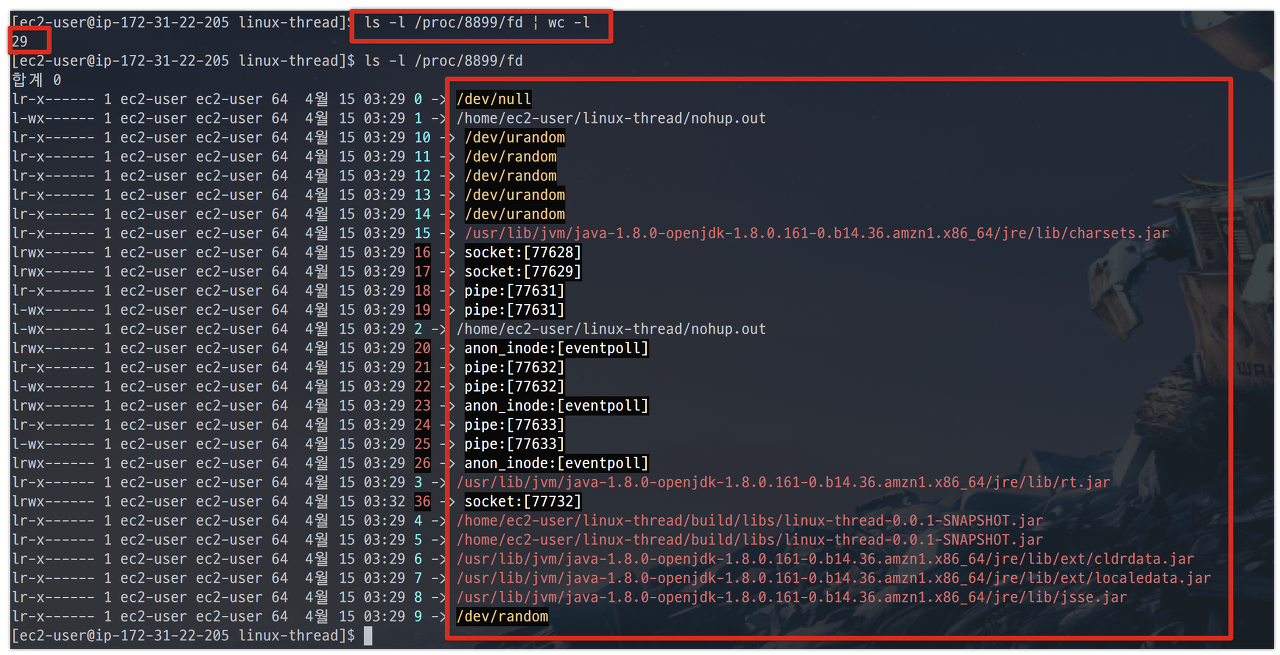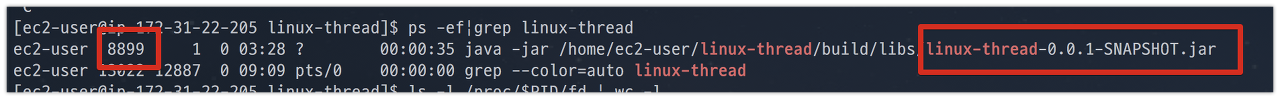 테스트용 서버에 프로젝트를 배포하고, 해당 프로젝트가 생성한 open file count를 아래 명령어로 확인합니다.