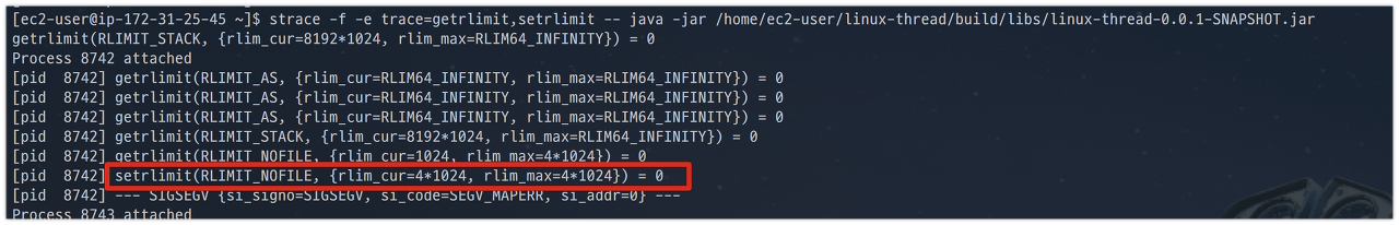 즉, 리눅스 OS 환경에서는 JDK 실행시 자동으로 limit 사이즈를 증가시켜준다는 것을 알 수 있습니다.