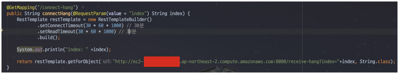 - RestTemplate 타임아웃이 먼저 나면 안되기 때문에 타임아웃을 30분으로 지정합니다.