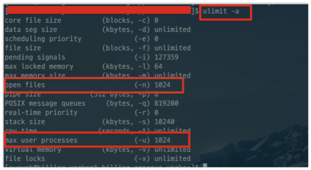 화면을 보시면 open files 와 max user processes의 값이 1024로 동일하게 잡혀있습니다.