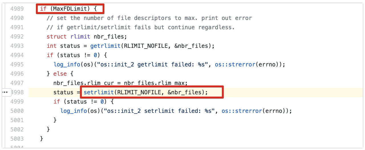 문서에는 MaxFDLimit 라는 옵션이 있었는데요, 뭔가 file limit과 관련돼 보입니다.